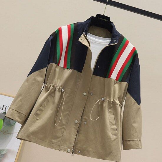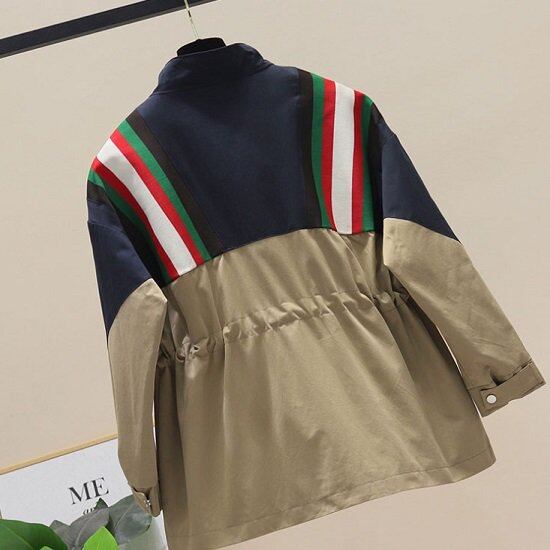 ブルゾン レディース ショート丈 長袖 ジャケット レディース カラフル ライン カジュアル ジャケット レディース ギャザー ボタン ブルゾン レディース ショート丈 ジャケット カラフル