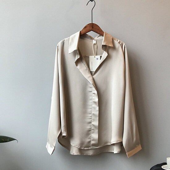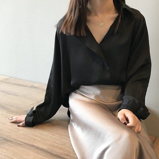 シャツ レディース サテン 長袖 Vネック ブラウス レディース サテン 光沢 通勤 シャツ ブラウス レディース オフィス ビジネス シャツ レディース おしゃれ かわいい ブラウス サテン 長袖