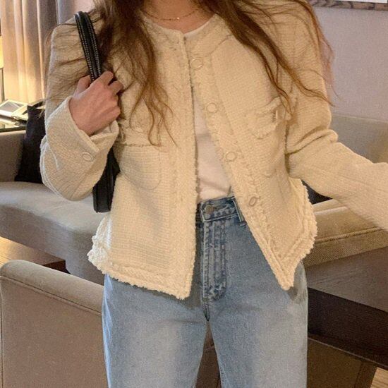 ジャケット レディース ツイード ショート丈 ジャケット ノーカラー ポケット ボタン ジャケット レディース きれいめ おしゃれ ジャケット レディース ツイード ショート丈 ジャケット ノーカラー