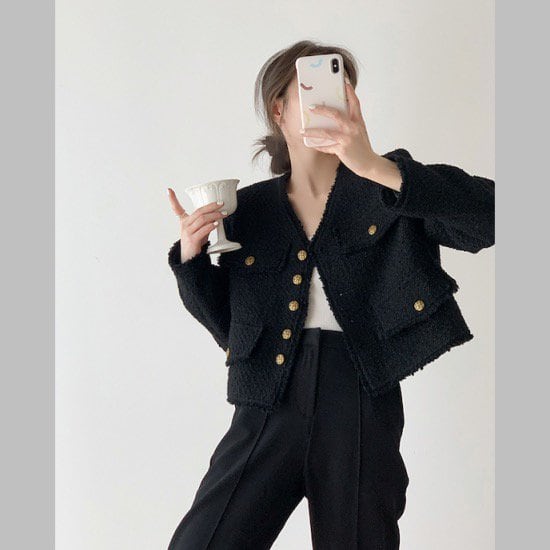ツイードジャケット レディース ショートコート ノーカラー 秋冬 アウター ツィードジャケット フォーマルスーツ ママスーツ フォーマル カジュアル ツイードジャケット レディース ショートコート