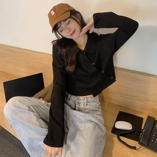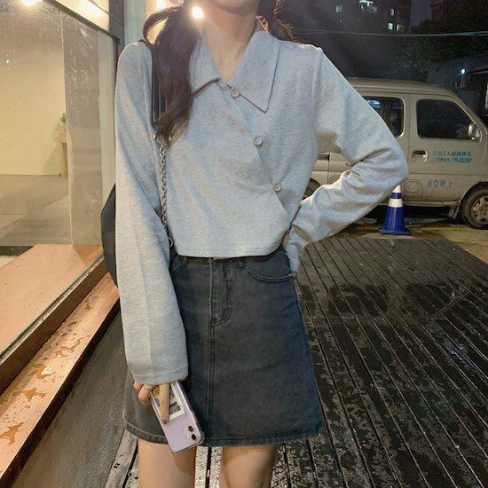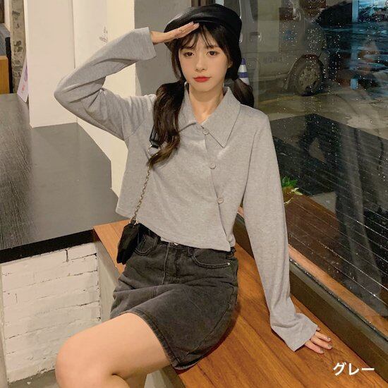 ポロカラーシャツ ポロシャツ トップス レディース 長袖 斜めボタン デザイントップス カットソー Tシャツ シンプル 大きいサイズ ポロカラートップス ポロシャツ トップス レディース 長袖 斜め