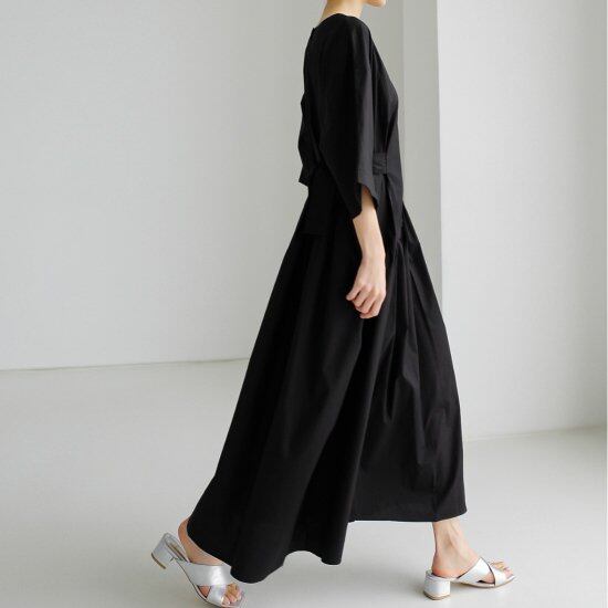 腰のリボンを結べば足長効果も抜群!