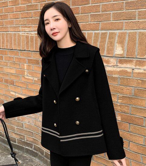 セーラーカラーコート ショート丈コート 大きいサイズ ライン入り テーラージャケットコート レディース コート テーラー ショート セーラー アウター 羽織 ダブルボタン ウール 大人 カジュアル