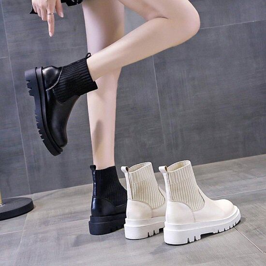 ブーツ レディース ニットソックス ショート ミニブーツ レディース ショート アンクル ブーツ レディース 厚底 5cm 歩きやすい ブーツ レディース ニットソックス かわいい おしゃれ