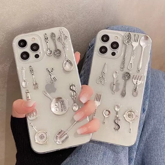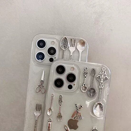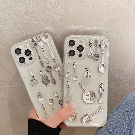 iPhoneケース カトラリー ナイフ フォーク 保護カバー レディースiPhone12 iPhone11 iPhone8 iPhone X スマホケース ベルトなし 小物アクセサリー 携帯ケース