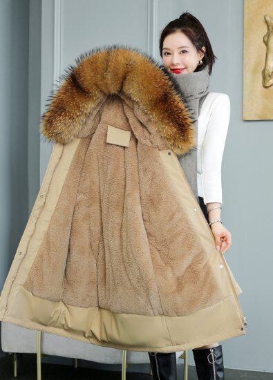 顔周りのフェイクファーはふわっとしたボリュームで小顔効果も。