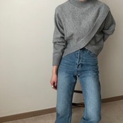 ニット トップス レディース 長袖 ハイネック アシンメトリー クロスデザイン タートルネック コンパクト丈 セーター ショート丈 クロス 個性的 カジュアル ニット トップス レディース