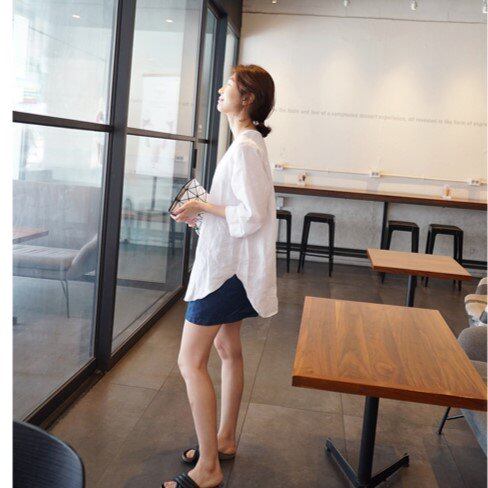 シャツ レディース リネン コットン 麻 綿 トップス 薄型 無地 体型カバー Uネック ゆったり シャツ レディース リネン コットン 麻 綿 トップス 薄型 無地 体型カバー Uネック ゆったり