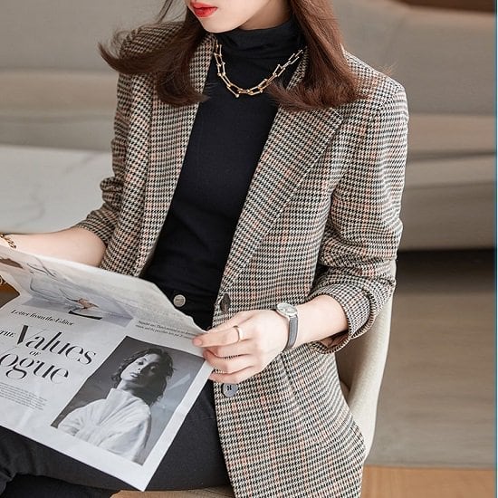 テーラードジャケット チェック柄 長袖 おしゃれ ジャケット レディース テーラード 通勤 オフィス スタイリッシュ かわいい テーラードジャケット チェック柄 長袖 オフィス 通勤 ビジネス