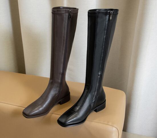 ロングブーツ レディース シューズ 靴 ブーツ 秋冬 美脚 シンプル サイドジップ スクエアトゥ ローヒール ソフトレザー カジュアル 歩きやすい 履きやすい ロングブーツ レディース ブーツ 秋冬