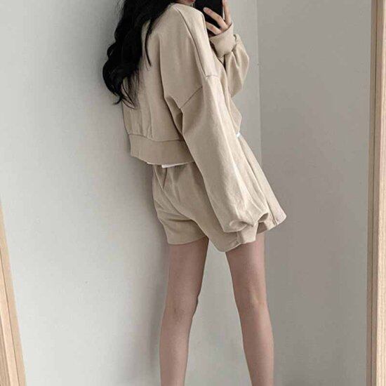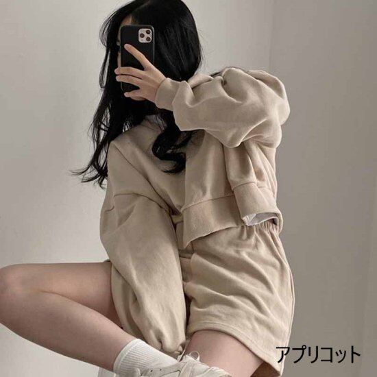 セットアップ レディース 長袖 ショートパンツ スウェット ルームウェア ルーズシルエット ゆったり 無地 カジュアル ジャージセットアップ ビッグシルエット ボリューム袖 セットアップ レディース