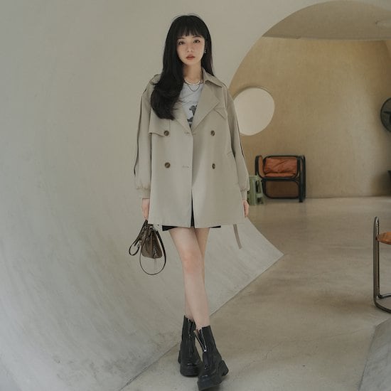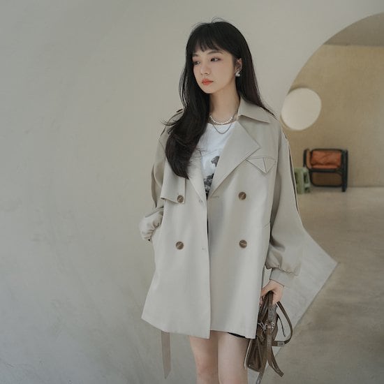 【一部即納】ウエストコート レディース トレンチコート ショート丈 春秋 無地 アウター ジャケット ウエスト紐 ベルト付き カジュアル エレガント おしゃれ ウエストコート レディース トレンチコート ショート