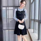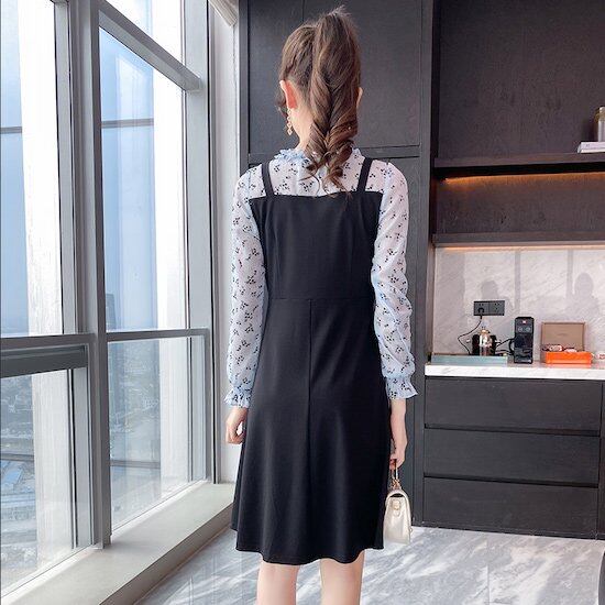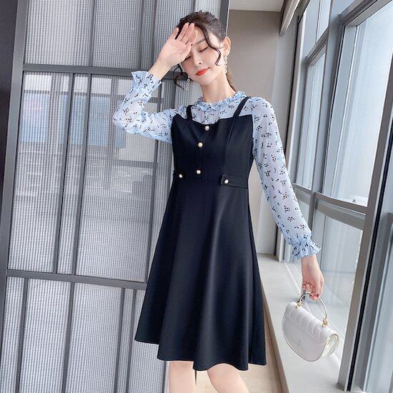 ワンピース レディース 長袖 花柄 ミドル丈 レイヤード風 こなれ感 上品 おしゃれ 大きいサイズ チュニック オールインワン スカート ワンピース レディース 長袖 花柄 ミドル丈 レイヤード風