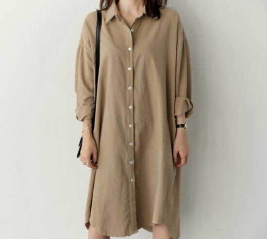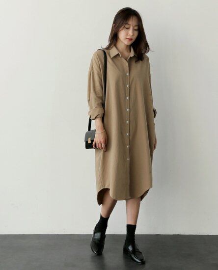 ゆるいシルエットが魅力のシャツワンピース。