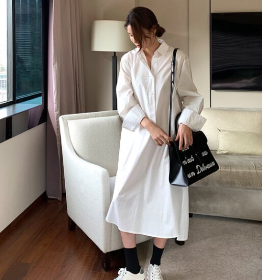ロングシャツワンピース レディース ワンピース ロング丈 シャツワンピ 長袖 カジュアル シンプル ストライプ 無地 ウエストリボン コットン 綿 春秋 プルオーバー お出掛け ロングシャツワンピース