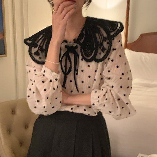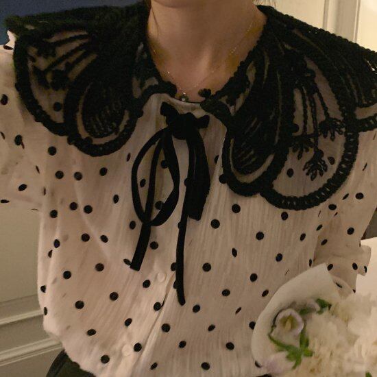 レースのビッグカラーとドットデザインが個性的な1枚です。