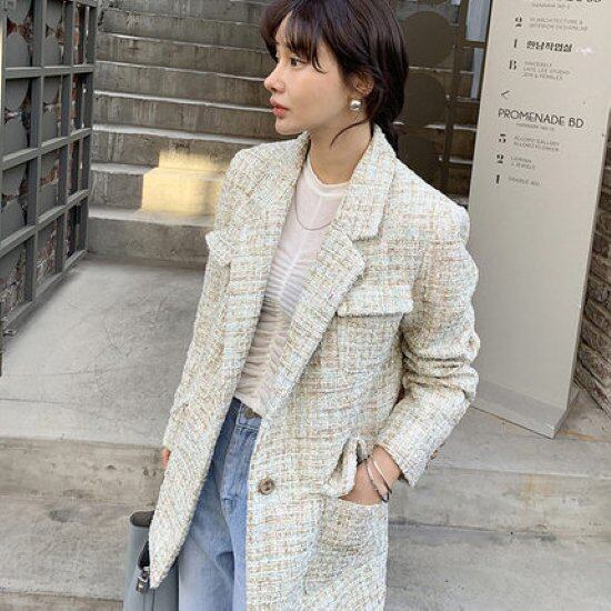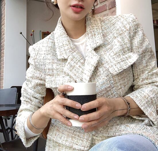 ツイードジャケット レディース スーツジャケット アウター 羽織 ジャケット 春秋 カジュアル おしゃれ お出掛け シングルブレスト アイボリー ポケット きれいめ オフィス ツイードジャケット