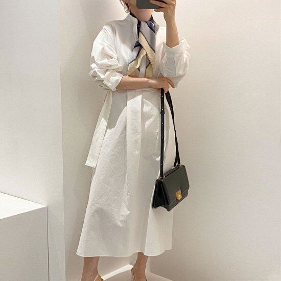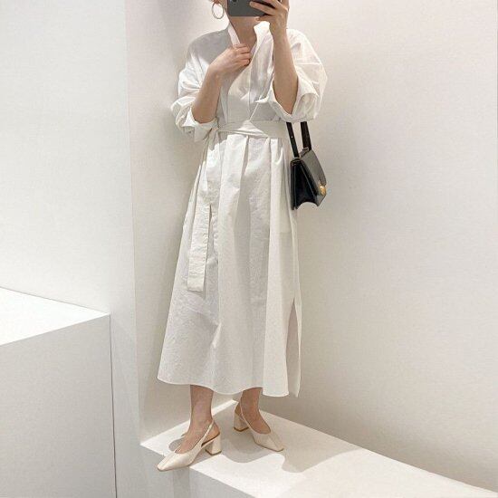 リボンベルトがきれいめな雰囲気のシャツワンピース!