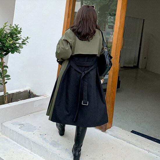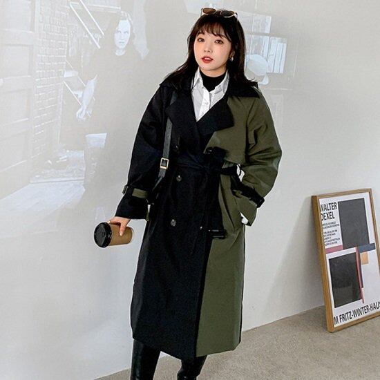 トレンチコート ロング丈 バイカラー 大きいサイズ コート レディース トレンチ ハイウエスト トレンチコート 大きいサイズ ゆったり 体型カバー コート レディース トレンチ かわいい ロング丈