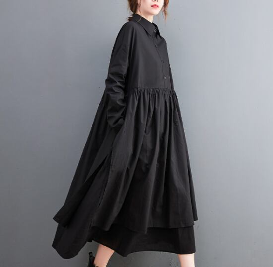ロングシャツワンピース レディース ワンピース シャツワンピ 長袖 無地 チェック柄 襟あり カジュアル おしゃれ お出掛け ゆったり 体型カバー コットン 綿 Aライン 切り替え