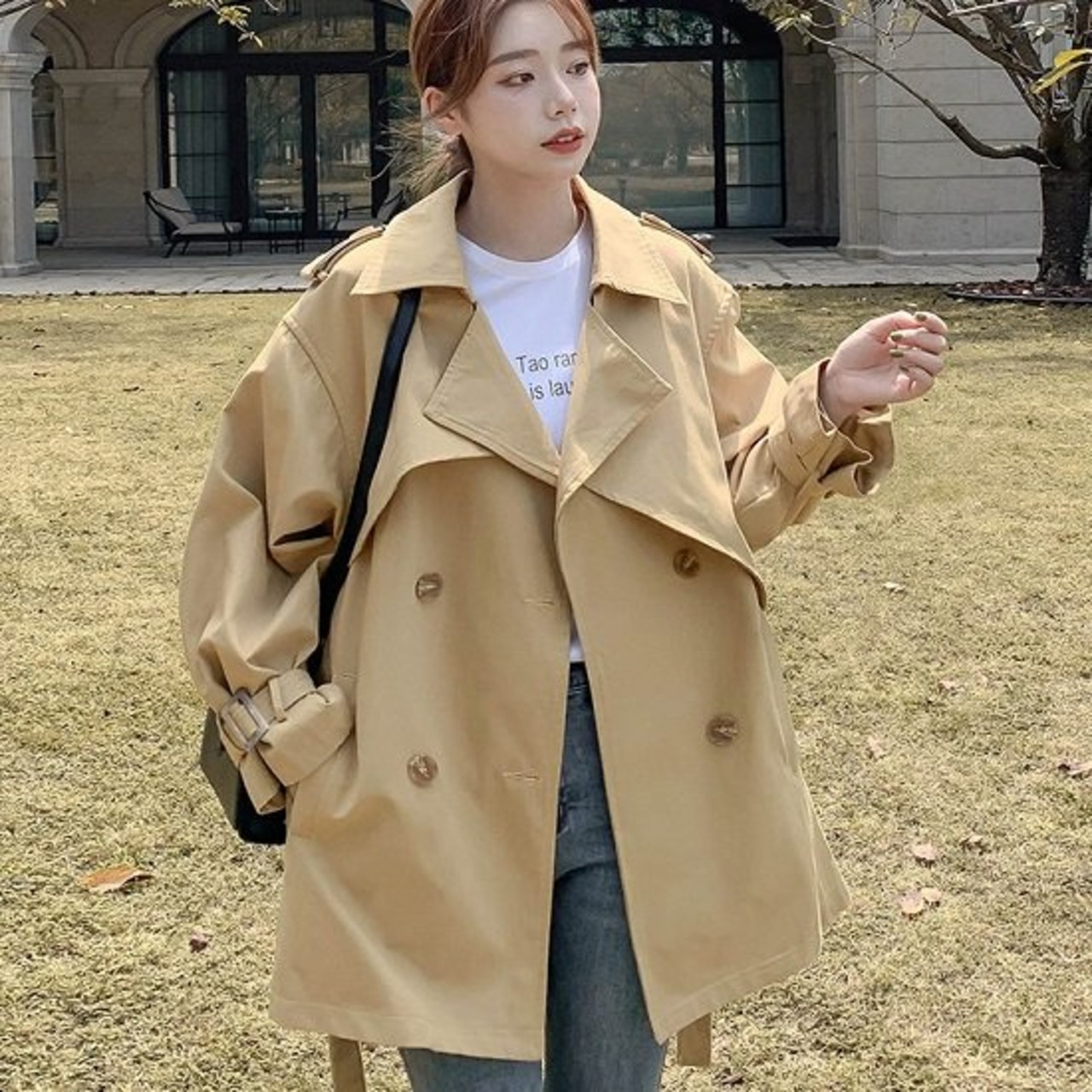 トレンチコート レディース ショート丈 ウエストベルト トレンチコート レディース ゆったり 体型カバー 大きいサイズ トレンチコート レディース 秋 おしゃれ かわいい トレンチ ショート丈