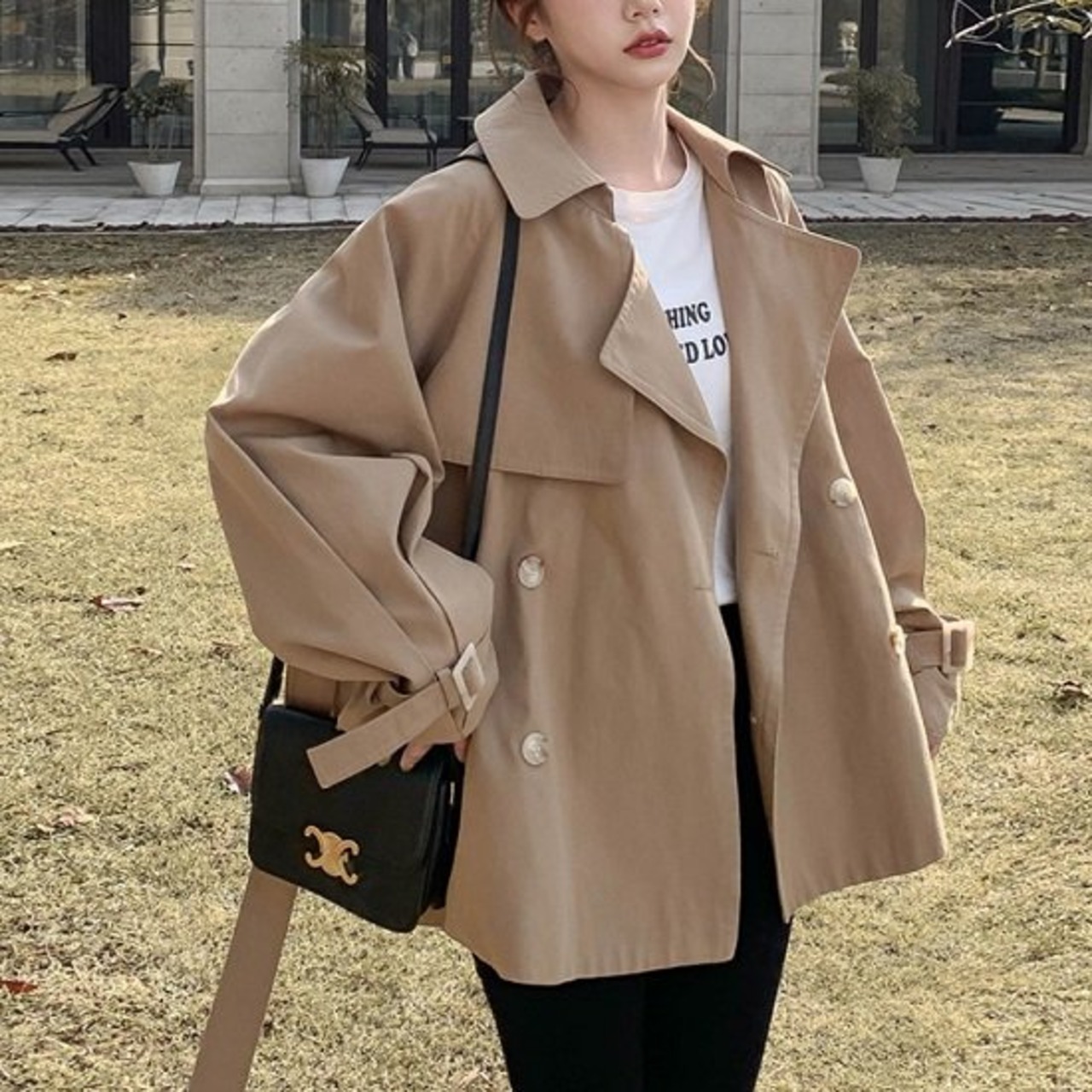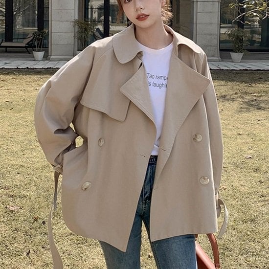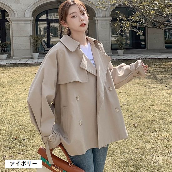 トレンチコート ショート丈 ハイウエスト ウエストベルト トレンチコート レディース 秋 ショート丈 かわいい ボタン コート ゆったり 大きいサイズ トレンチコート ショート丈 ハイウエスト