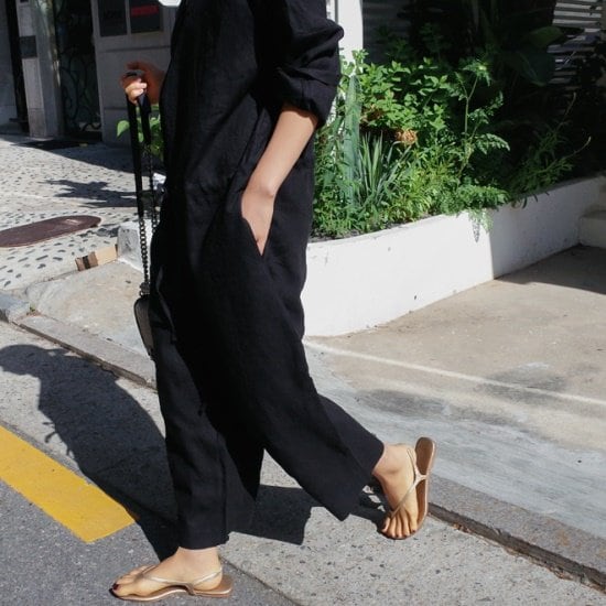 オールインワン ジャンプスーツ レディース 韓国 ファッション ワイドパンツ フロントボタン ウエストコード リネン 7分袖 コットン リネン サロペット パンツ Vネック 夏 レディース 韓国