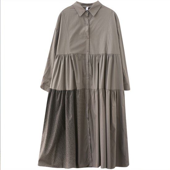 長袖シャツワンピース レディース ワンピース ロングワンピース シンプル 無地 カジュアル お出掛け おしゃれ コットン 綿 大きいサイズ ゆったり 体型カバー ルーズ Aライン シャツワンピ