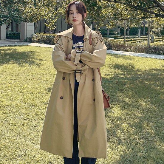 トレンチコート レディース ロング丈 おしゃれ トレンチコート レディース ウエストベルト ハイウエスト かわいい トレンチコート レディース ゆったり 体型カバー トレンチコート ロング丈