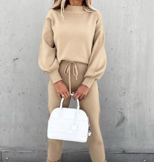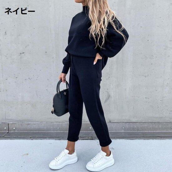 セットアップ レディース ツーピース スウェット トップス ボトムス ハイネック 長袖 長ズボン パンツ カジュアル ルームウェア シンプル 無地 秋冬 上下セット 2点セット セットアップ
