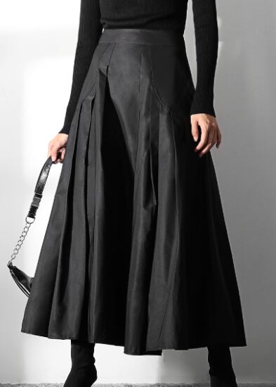 シックなブラックのロングスカート。