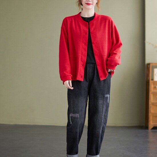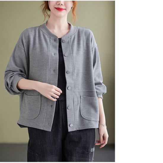 カーディガン レディース ショート丈 ノーカラー アウター カーディガン 大きいサイズ 長袖 カーディガン レディース ゆったり 体型カバー カーディガン ショート丈 ノーカラー 大きいサイズ