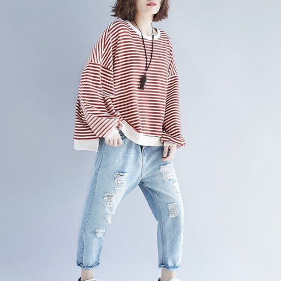 シャツ レディース ボーダー柄 ショート丈 トップス Tシャツ アシンメトリー ゆったり シャツ レディース 長袖 体型カバー大きいサイズ シャツ レディース ボーダー柄 ショート丈 アシンメトリー