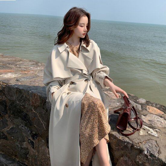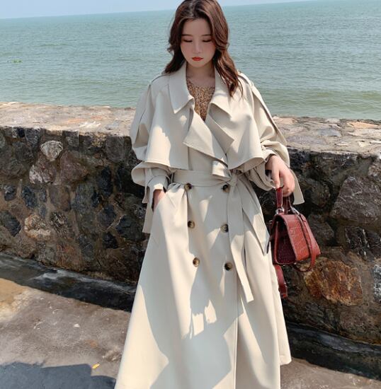 トレンチコート レディース ロングコート アウター コート 羽織 ウエストベルト ダブルブレスト 長袖 カジュアル きれいめ 通勤 お出掛け おしゃれ 無地 ゆったり ベージュ トレンチコート