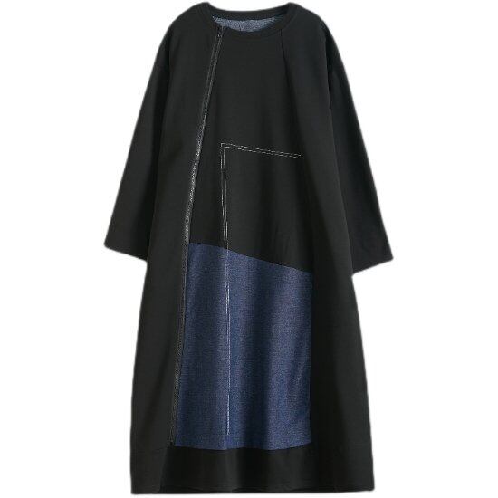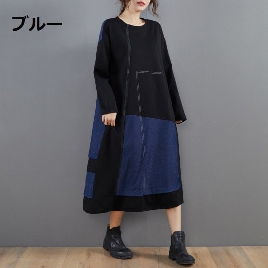 長袖ワンピース レディース Aラインワンピース プルオーバー ステッチ ラウンドネック ゆったり 体型カバー カジュアル おしゃれ お出掛け コットン 綿 レトロ ロングワンピース Aライン