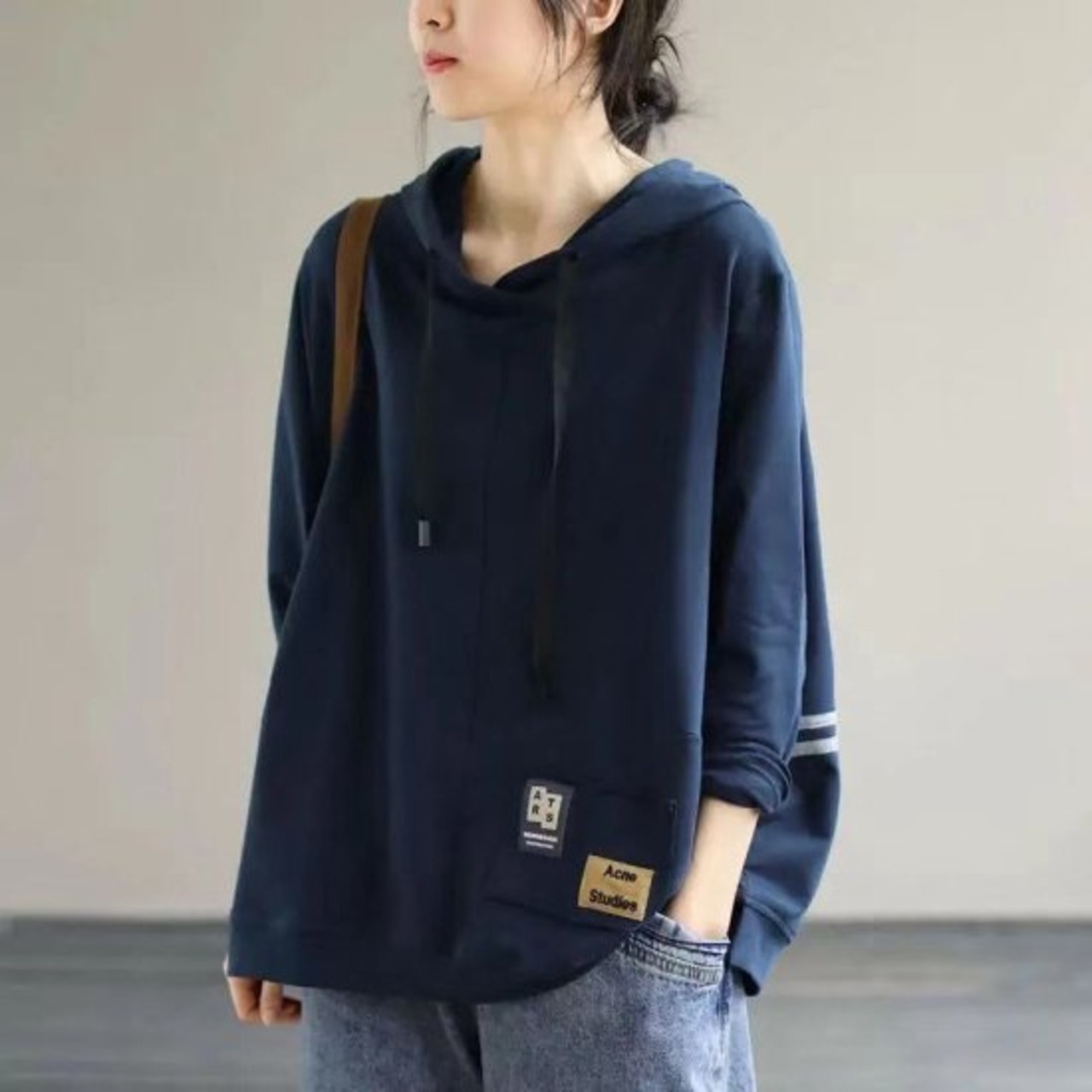 スポーティなデザインの大きめパーカー。