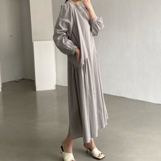 プリーツワンピース レディース 長袖 ゆったり ロング丈 ラウンドネック ロングワンピース マキシワンピース 体型カバー 揺れる 着痩せ プリーツワンピース レディース 長袖 ゆったり ロング丈