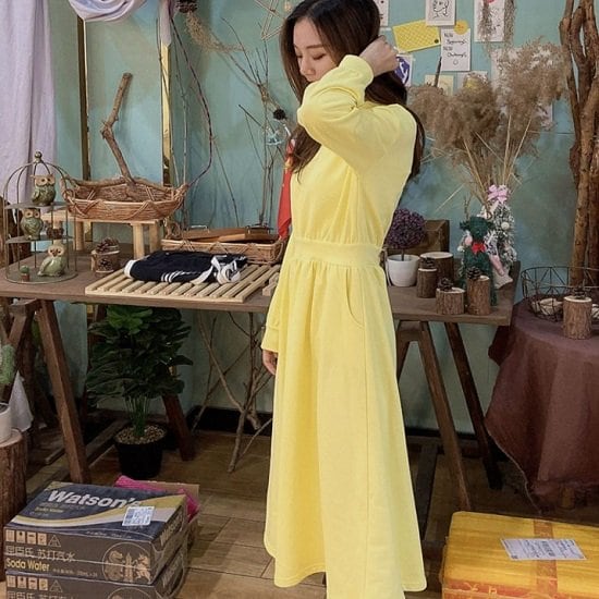 ワンピース レディース ロング丈 カジュアル ワンピース ウエストバンド ハイウエスト ワンピース ノーカラー スウェット かわいい ワンピース レディース ロング丈 カジュアル ウエストバンド