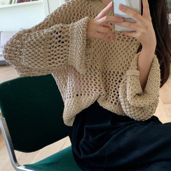 透かし編みが可愛い、夏から秋口に使いやすいニット。
