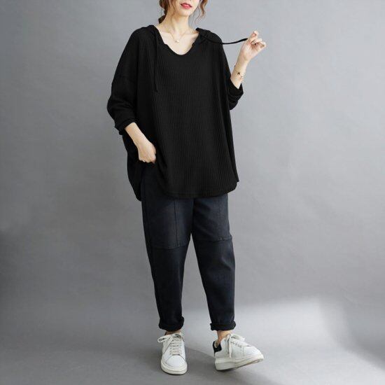 パーカー プルオーバー ワッフル レディース 韓国 ファッション オーバーサイズ ゆったり フードパーカー 大人カジュアル Vネック おしゃれ 黒パーカーグレー パーカー コットン 綿 長袖 パーカー