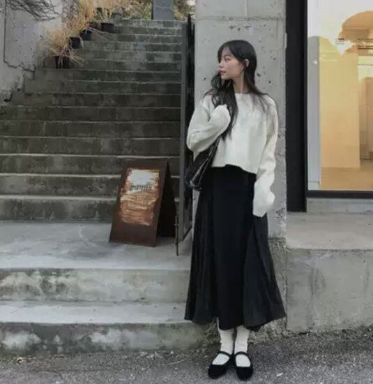 ハイウエストとリボンのウエストマークでスタイル良くみせてくれます。
