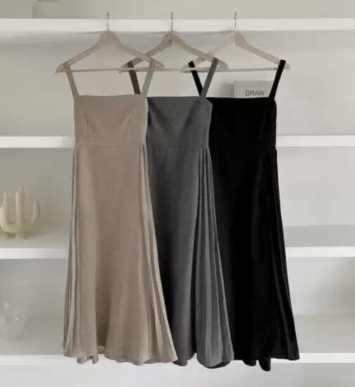 脇をプリーツで切り替えた華やかなキャミソールワンピース。