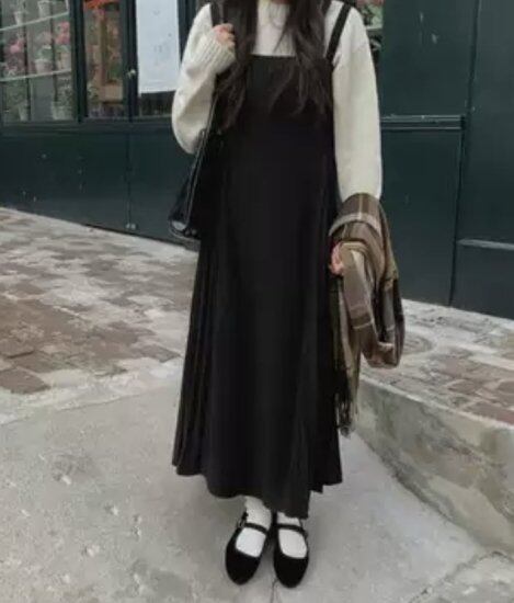 サイドプリーツキャミワンピース キャミソール レディース ロングワンピース スエード調 秋冬 シンプル 上品 カジュアル 無地 かわいい おしゃれ フェイクスエード ウエストリボン ハイウエスト