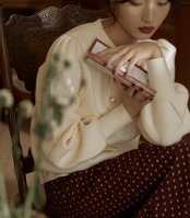 カーディガン パールボタン パフスリーブ エレガント レディース 長袖 秋冬 シンプル 上品 クルーネック ラウンドネック 羽織 通勤 通学 オフィススタイル かわいい ボリューム袖 レトロ