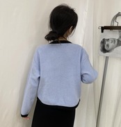 ニットカーディガン レディース トップス 羽織 Vネック コントラストカラー ボタン ポケット 長袖 シンプル 無地 きれいめ お出掛け おしゃれ ブルー ホワイト ブラック ニットカーディガン