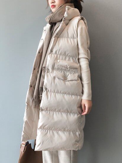 シンプルなデザイン、スッキリしたシルエットのダウンベスト♪