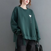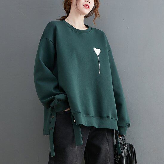 トレーナー スウェット レディース 韓国 ファッション ワイドサイズ サイドスリット スナップ Aライン ハート コットン スウェット トレーナー 秋冬 オーバー プルオーバー 大人カジュアル 長袖
