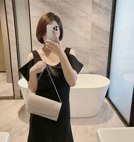 シンプルかつ上品なデザインで、ドレスやスーツに合わせやすいバッグ。
