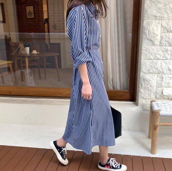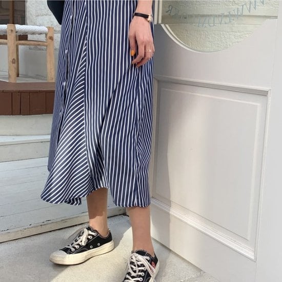 ストライプの縦長効果と不規則なストライプでおしゃれにスタイルアップ!