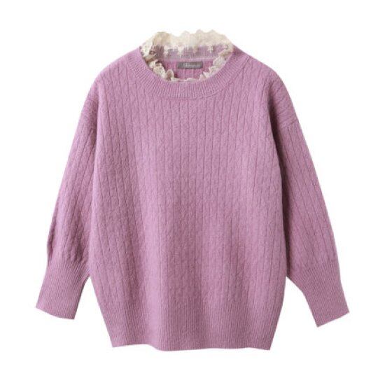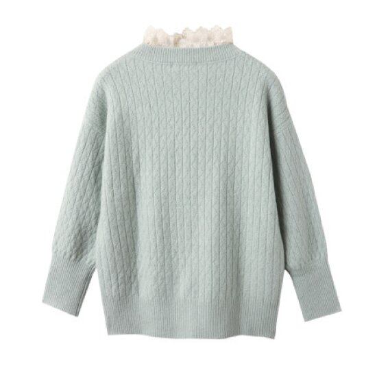 ニットセーター レディース トップス 長袖 プルオーバー ハーフタートルネック レース フリル シンプル 無地 カジュアル お出掛け おしゃれ パステルカラー デイリー 秋冬 ニットセーター